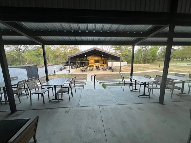 The restaurant back porch tables can be reserved to eat dinner (during the early show only). www.blackhawkcreekgrill.com OR 903-871-1113. Live video of the comedian will be broadcasted on the backporch TV.