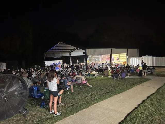 The stage is under a covered pavilion. For this show, ticketholders from Rose City Comedy will be in chairs under Pavilion.